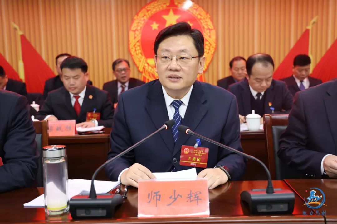 师少辉在讲话中指出,2023年,是全面贯彻党的二十大精神的开局之年,全区上下坚持以习近平新时代中国特色社会主义思想为指导,认真落实党中央和省委、市委、区委决策部署,突出“四个聚焦”、聚力“三十工程”和“3510”重点项目,加快建设“一极两城三基地”、推动实现“六个走在前列”,奋力打造中国式现代化建设焦作实践先行区,交出了一份厚重提气的“马村答卷”。我们对标对表、砥砺初心,前行步伐铿锵有力。深入学习宣传贯彻党的二十大精神,扎实开展主题教育,建立“4432”工作模式,迎接主题教育中央巡回指导组调研访谈,成果成效受到充分肯定。坚定扛稳“国之大者”,耕地保护、乡村振兴、生态环保、现代化产业体系建设等迈出坚实步伐。我们抢抓机遇、迎难而上,发展动能集聚成势。全区主要经济指标稳中向好、位次前移。谋划实施的三大战略项目,全部纳入市“三十工程”和市政府工作报告,“云台·天河”EOD项目全面开工,国家EOD模式创新发展“焦作样板”在马村区落地生根;生物医药产业园入选省“双百”工程,艾普拉唑建成投产,健风生物主体完工;生物医药产业基金落地,白鹭湖智慧岛“三岛一区”稳步实施。我们深化改革、破局开新,未来前景可感可及。实施创新型企业树标引领行动,“四有”研发活动覆盖率高于全市平均水平。创新企业集成式服务,打造“万人助万企”升级版,营商环境评价排名大幅进位,跻身全省城区第一方阵。我们用心用情、践行宗旨,民生福祉质效并举。十项重点民生实事全面完成,解放东路全线竣工通车。践行“千万工程”经验,乡村建设示范村“双考核”排名城区第一。平稳完成集团化办学,高考本科上线人数创历年新高。发起“困境儿童营养支持计划”,被省民政厅推荐为优秀典型案例。我们强基固本、从严治党,政治生态风清气正。强化“五星”支部创建,全市创建观摩2次第三、1次第一。开展“月初干群连心会”,微网格治理经验在全省坚持和发展新时代“枫桥经验”大会上作典型发言。坚持严管厚爱,强化“224”精准监督,落实“三个不得”,一体推进“三不腐”,清廉创建工作排名城区第一。
