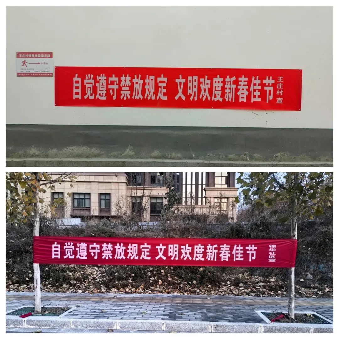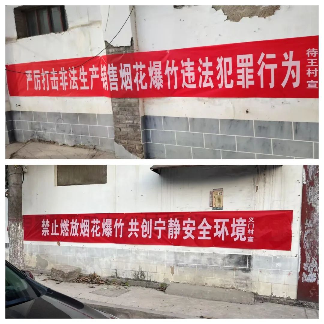 三是群策群力,强化宣传。待王街道在辖区各个重要路段张贴《马村区关于全域全时段禁止销售燃放烟花爆竹的通告》,并利用巡逻车上的大喇叭进行循环播放。在田间地头,悬挂禁燃禁放宣传条幅,利用微网格员进行入户走访,发放宣传页,营造浓厚的宣传氛围。