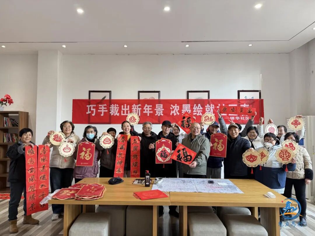 “李阿姨,您这剪纸手艺也太好啦,剪的骏马真精神!”近日,锦华社区新时代文明实践站内暖意融融,“巧手裁出新年景 浓墨绘就社区春”主题活动热闹开场。30余名社区党员、群众围坐一堂,红纸翻飞间,剪刀开合自如,一个个寓意吉祥的剪纸作品跃然纸上;笔墨飘香中,大家挥毫泼墨,一幅幅饱含祝福的春联、福字新鲜出炉,将对新年的期盼寄托于指尖、流淌于笔墨。